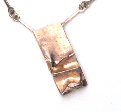 Lapponia halskæde med aflange led, prydet med fast, profileret vedhæng af sterling sølv. Kæde L. 42 cm., vedhæng L. 30 mm., samlet vægt ca. 14 gr.