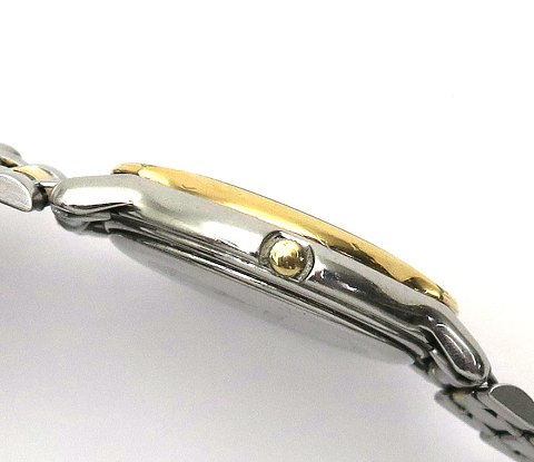 Gucci damearmbåndsur, ref. nr. 8000L i urkasse og med foldelænke af gulddoublé/stål. Sort skive bag mineralglas med stregindikation, central sekundviser og datovisning i #6 position. Quartsværk, urkasse diameter 30 mm.