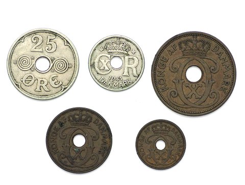 Lot bestående af 1 øre 1941 - H 30 C, 2 øre 1941 - H 29 C, øre 1941 - H 28 C, 10 øre 1941 cn - H 26 C samt 25 øre 1941 cn - H 24 C.