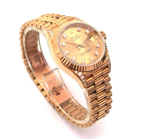Rolex, brillantbesat damearmbåndsur - 18 kt. guld