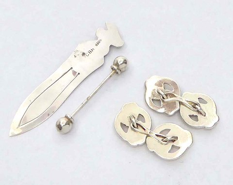 Par manchetknapper, reversknap og bogmærke af sølv (3)