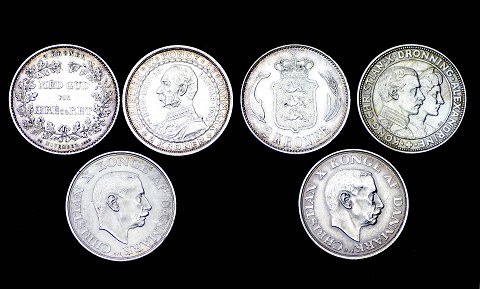 2 kr. 1888, 1906, -16, -23, - 37 og 1945 sølv *Erindringsmønter* (6)