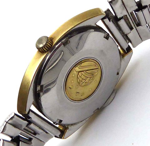 Omega Constellation Automatic herrearmbåndsur, reg. nr. 168.017 i urkasse af gulddoublé/stål og med foldelænke af stål. Metallicgrå skive bag plexiglas med stregindikation, central sekundviser og datovsning i #3 position. Automatisk værk kaliber 564. Urkasse diameter 35 mm.