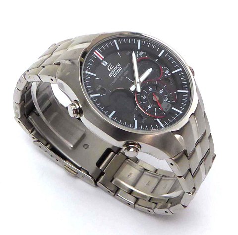 Casiao Edifice Chronograph herrearmbåndsur, ref. nr. EFA 135 i urkasse ofg med foldelænke af stål. Sort struktureret skive bag safirglas med stregindikation, central og separat sekundviser, separat digitalvisning og chronograph funktioner. Quartzværk. Urkasse diameter 40 mm.