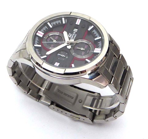 Casiao Edifice Chronograph herrearmbåndsur, ref. nr. EFR 543 i urkasse ofg med foldelænke af stål. Sort skive bag safirglas med stregindikation, central og separat sekundviser, datovisning i #3 position og chronograph funktioner. Quartzværk. Urkasse diameter 44 mm.
