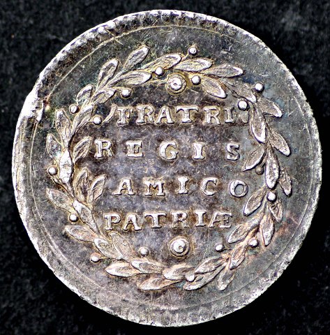 Frederik Prins IIII, medalje af sølv *FRATRI REGIS AMICO PATRIÆ*, diameter 18,5 mm., vægt 3,7 gr.