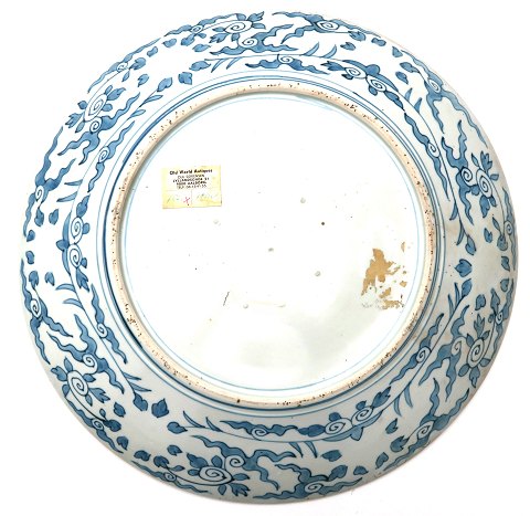 mari, stort japansk fad med jardiniére- og blomsterdekoration, diameter 46 cm. Japan, 20. århundrede.