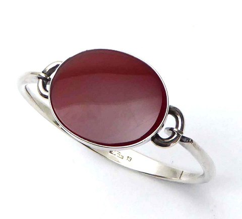 N. E. From, oplukkelig armring af sterling sølv, prydet med vinrød kvarts, indvendig 51 x 49 mm., samlet vægt ca. 24 gr.