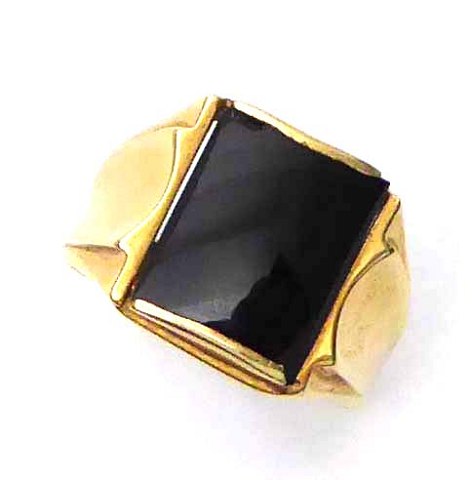 Herrering af 14 kt. guld, prydet med rektangulær onyx. Ring Str. 63, samlet vægt ca. 7,5 gr.