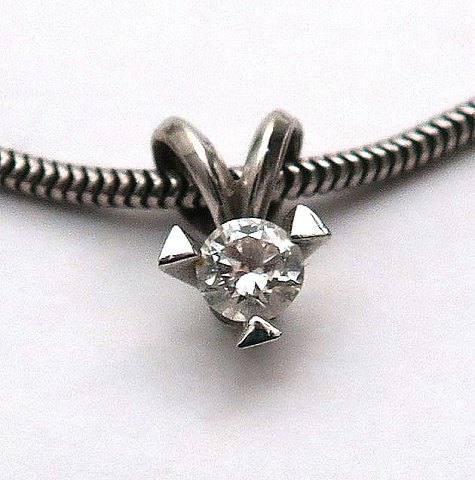 Italiensk halskæde med vedhæng af sterling sølv, prydet med brillantsleben diamant Wesselton Si. Kæde L. 42 cm.