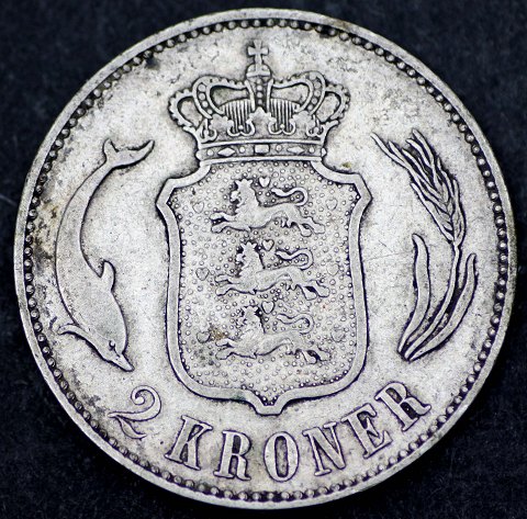 Christian IX, 2 kroner 1899 sølv, diameter 31 mm., vægt 15 gr. (.800).