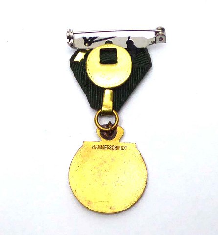 Frimurerorden af emaljebelagt metal, tilskrevet Sankt Andreas ordenen. Bagsiden med fremstillerens stempel Hammerschmidt. L. 62 mm.