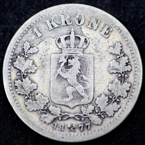 Oscar II, 1 kr. 1877 sølv - Sieg 58, diameter 25 mm., vægt 7,5 gr. (.800)