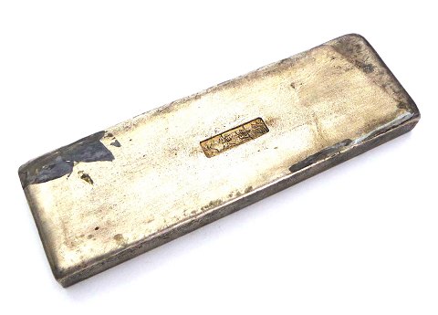 Kinesisk astronomisk barre af sølvholdigt metal, præget med årscylus, bagside med stempel. 190 , 60 x 18 mm., vægt ca. 1,2 kg.