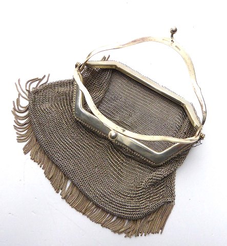 Tysk Ragtime teaterpurse af flettet alpacca med forsølvet lukke.