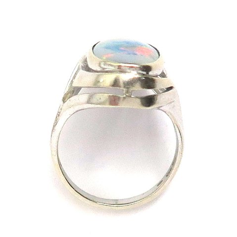Ring af 14 kt. hvidguld, prydet med cabochonsleben opal 10 x 16 mm. Ring Str. 55½, samlet væg ca. 6 gr.