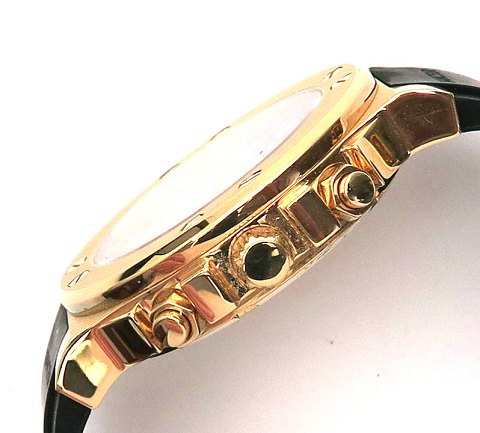 Vanceur Royal Castle Chronograph herrearmbåndsur i urkasse af guldtonet stål. Sort struktureret skive bag mineralglas med arabettal og stregindikationer, central og separat sekundviser, 12/24 timer visning samt datovisning i #4½ position. Quartzværk. Urkasse diameter 40 mm. Gummirem med foldespænde.