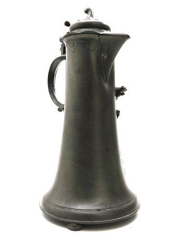 Tysk lågkande af tin, dekoreret med påsat hestehoved og volutter. H. 37 cm. Meisterzinn 20. årh.