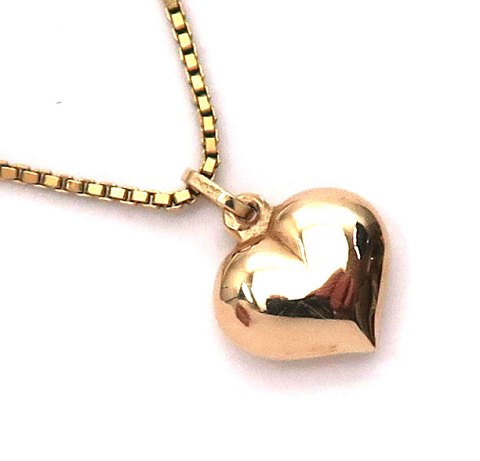 Veneziamønstret halskæde af guldddoublé med hjerteformet vedhæng af 14 kt. guld. Kæde L. 19 cm.
