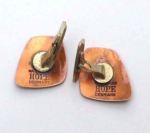 Par 1970'er manchetknapper af kunstnerisk emaljeret kobber. front 22 x 30 mm. Fremstillet hod Hope - Danmark.