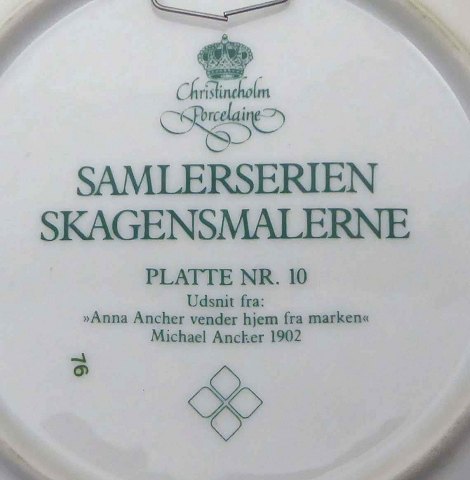 Christineholm, Skagensplatte # 10 med motivudsnit af et P.S. Krøyer maleri. Diemeter 19 cm.