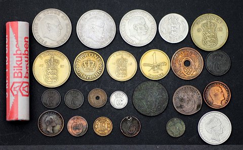 Danmark, samling erindringsmønter, kr. og skillingsmønter m.v. (24)