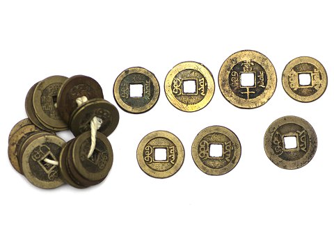 Kina, samling cash, heraf 19 stk. trukket på snor.