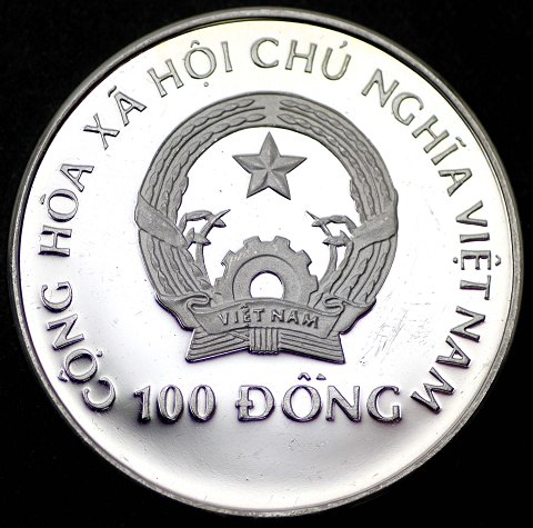 Vietnam, 100 Dông 1990 finsølv, diameter 38 mm., vægt 16 gr. (.999).