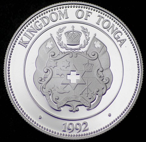onga, 1 Pa'anga 1992 sterling sølv, diameter 38,6 mm., vægt 31,6 gr. (.925). Schön# 151