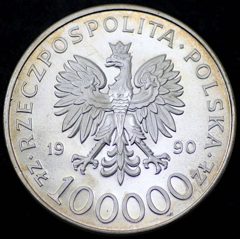 Polen, 100000 Zloty 1990, *10 års Solidarnosc jubilæum*, diameter 39 mm., oplag 20.000 stk.