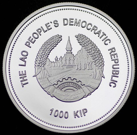 Laos, 1000 Kip 2008 finsølv, diameter 38,6 m., mm., vægt 28,2 gr. (.999).