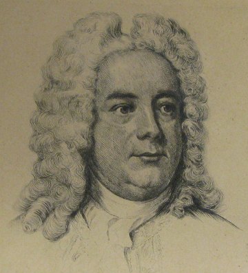 Blyantsigneret radering af komponisten Georg Friedrich Händel, signeret W. Perl. 19. århundrede. Indrammet bag glas. Radering ca. 9 x 11,5 cm.