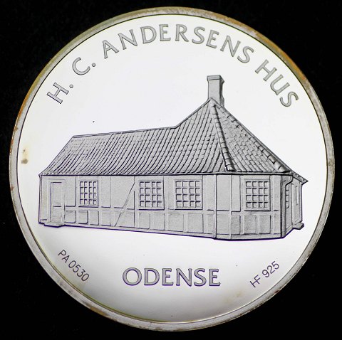 Medalje af sterling sølv, præget i anledning af H. C. Andersens 200 års fødselsdag 2. april 1805. Diemeter 40 mm., vægt 24 gr. (.925). Nummereret oplag max. 5000 stk.