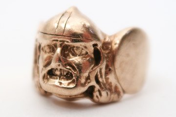 Herrering med vikingehoved, 8 kt guld, ca. 14 g