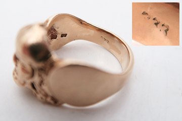 Herrering med vikingehoved, 8 kt guld, ca. 14 g