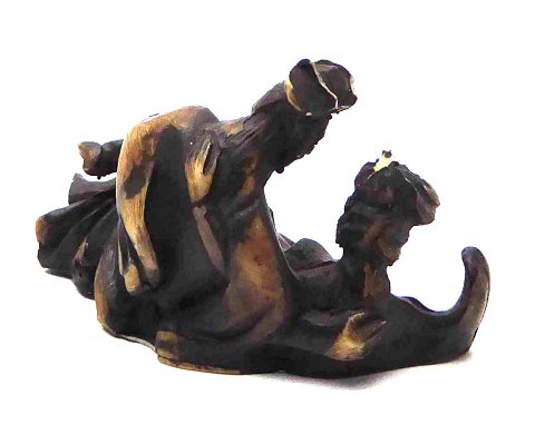 Japan, erotisk figurgruppe bearbejdet og skåret i kamfertræ, L. 65 mm. 20. århundrede.