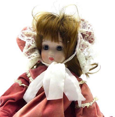 Dekorationsdukke med hoved, arme og ben af porcelæn
