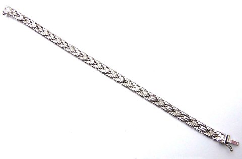 Armlænke af sterling sølv med Vformede led, afsluttet med perlebort. B. 6 mm., L. 19 cm., vægt cs. 16 gr. Italiensk design.
