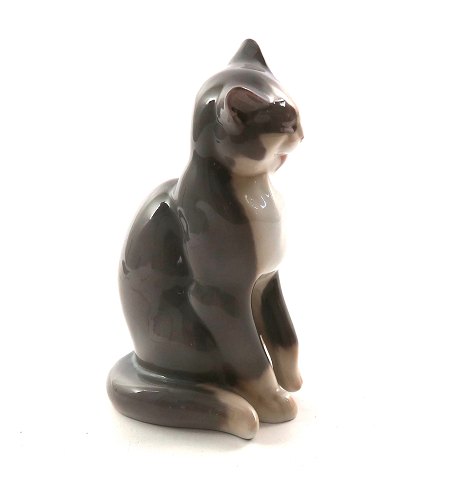 B&G, Svend Jespersen figur i form af siddende kat som slikker pelsen. H. 19 cm.