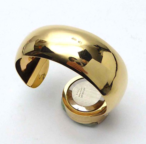Smykkeur i armbånd af 14 kt. guld, prydet med mamoreret jade
