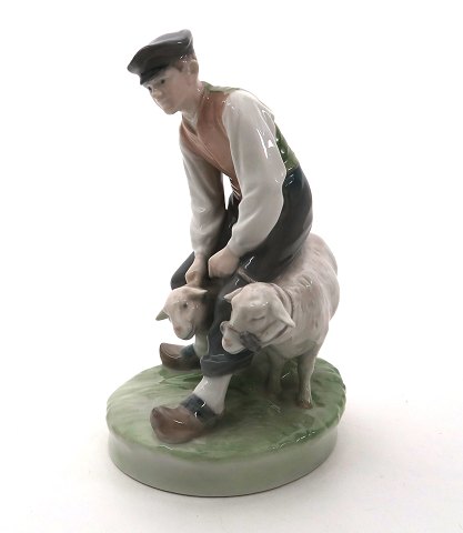 Royal Copenhagen figur #627 *Bonde med får*, H. 19 cm., 1. sortering. Design Christian Thomsen.