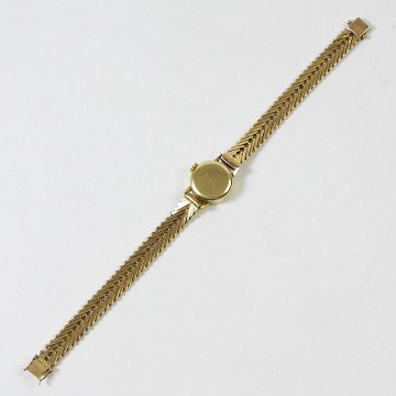 Tissot damearmbåndsur i kasse af guld 14 kt med lænke ligeledes af guld 14 kt.