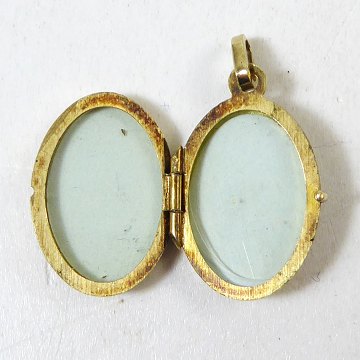 Oval medaljon guld 14 kt, vægt incl. indlæg ca. 2 g.
