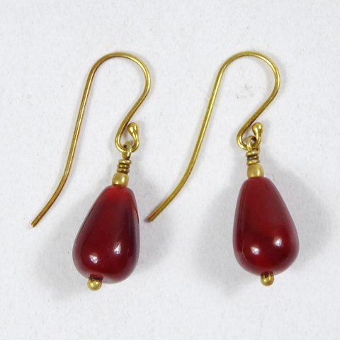 To par øreringe med glassten og muligvis forgyldt sølvmontering, ustemplet.