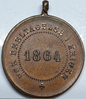 Danmark, Erindringsmedaljen for Krigen 1864, Diameter - 17,5 mm. Sjældnere end selve medaljen. For deltagelse i krigen 1864. Bronze