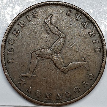 Isle of Man, ½ penny 1839, dronning Victoria, KM#13. 1 år type. Kobber.