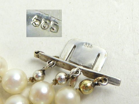Treradet perlearmbånd med lås af hvidguld 14 kt