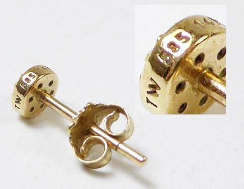 Prydet med 7 brillanter i hver ørering. Øreringens diameter ca. 4,5 mm. Stemplet 'TW 585 14K'.