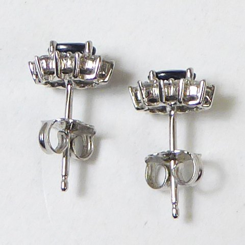 Par ørestikker af hvidguld 14 kt med brillanter og antageligt safirer, ca. 2 g.