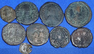 Byzantinsk imperium, sæt med 9 mønter 491-668, INTERESSANT